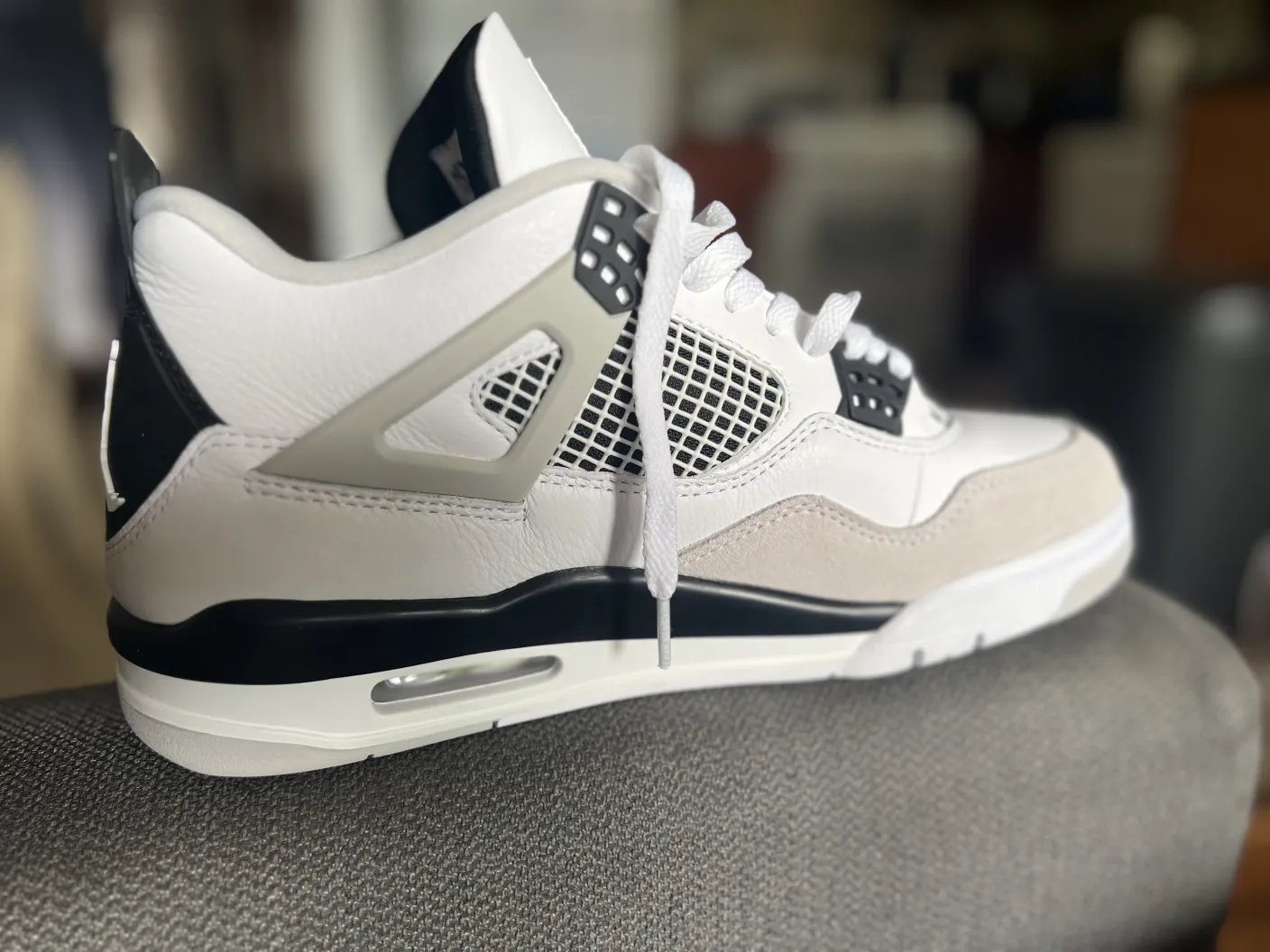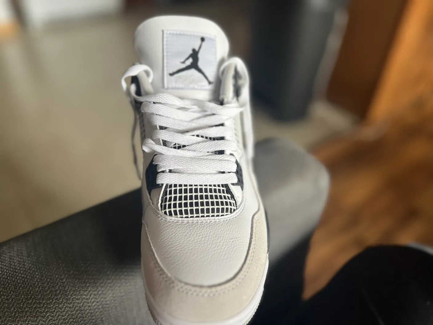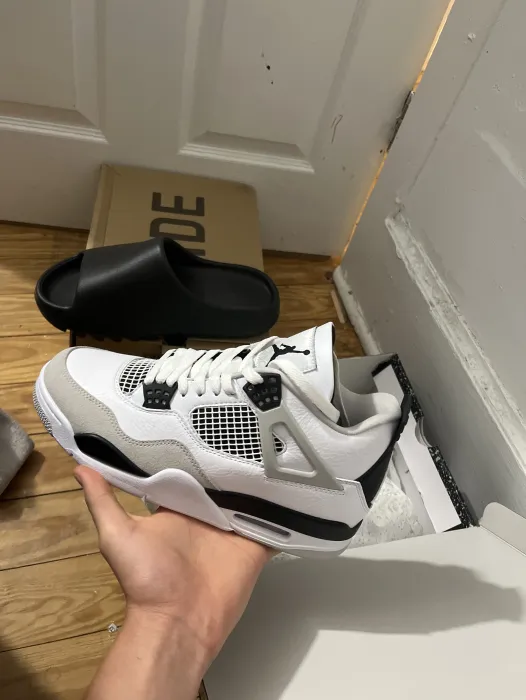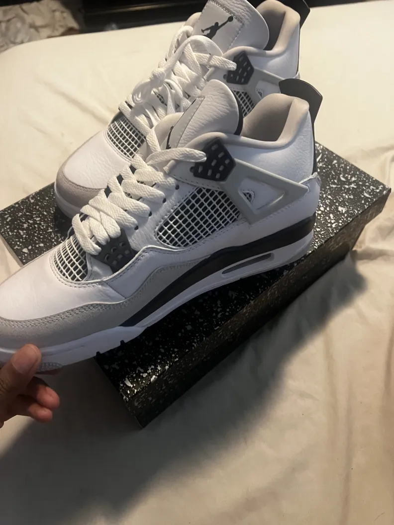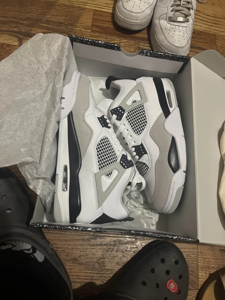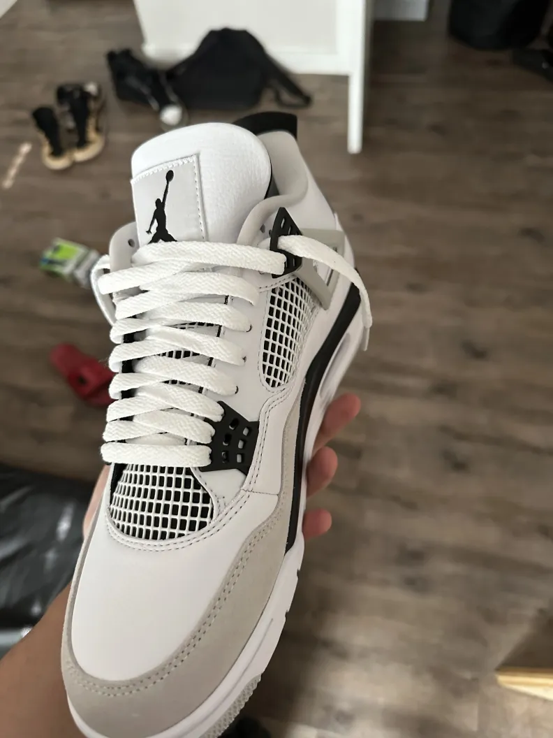 Was very skeptical about purchasing these shoes due to previous bad experience. Finekick assured me that they were 💯 and just receiving my Jordan 4s Military Black today and I must say that I’m impressed and very satisfied!! Thanks will be buying again soon 🫡