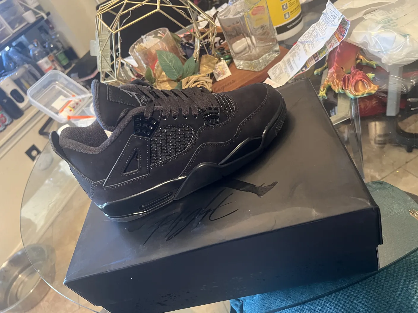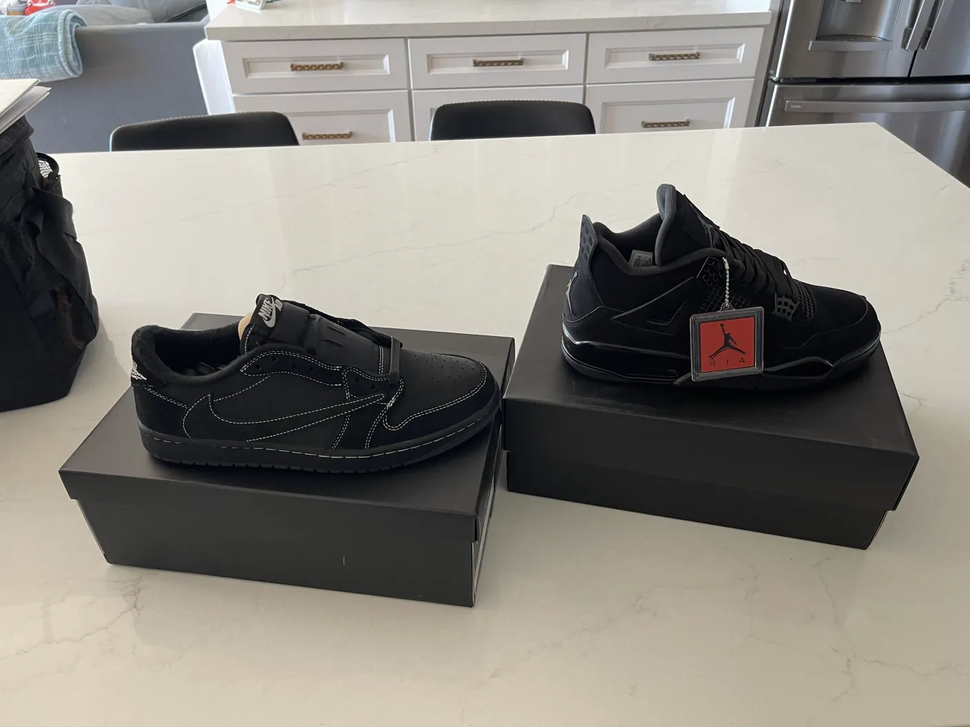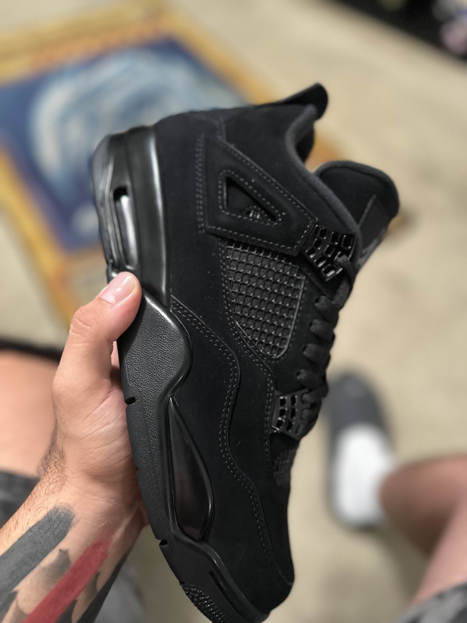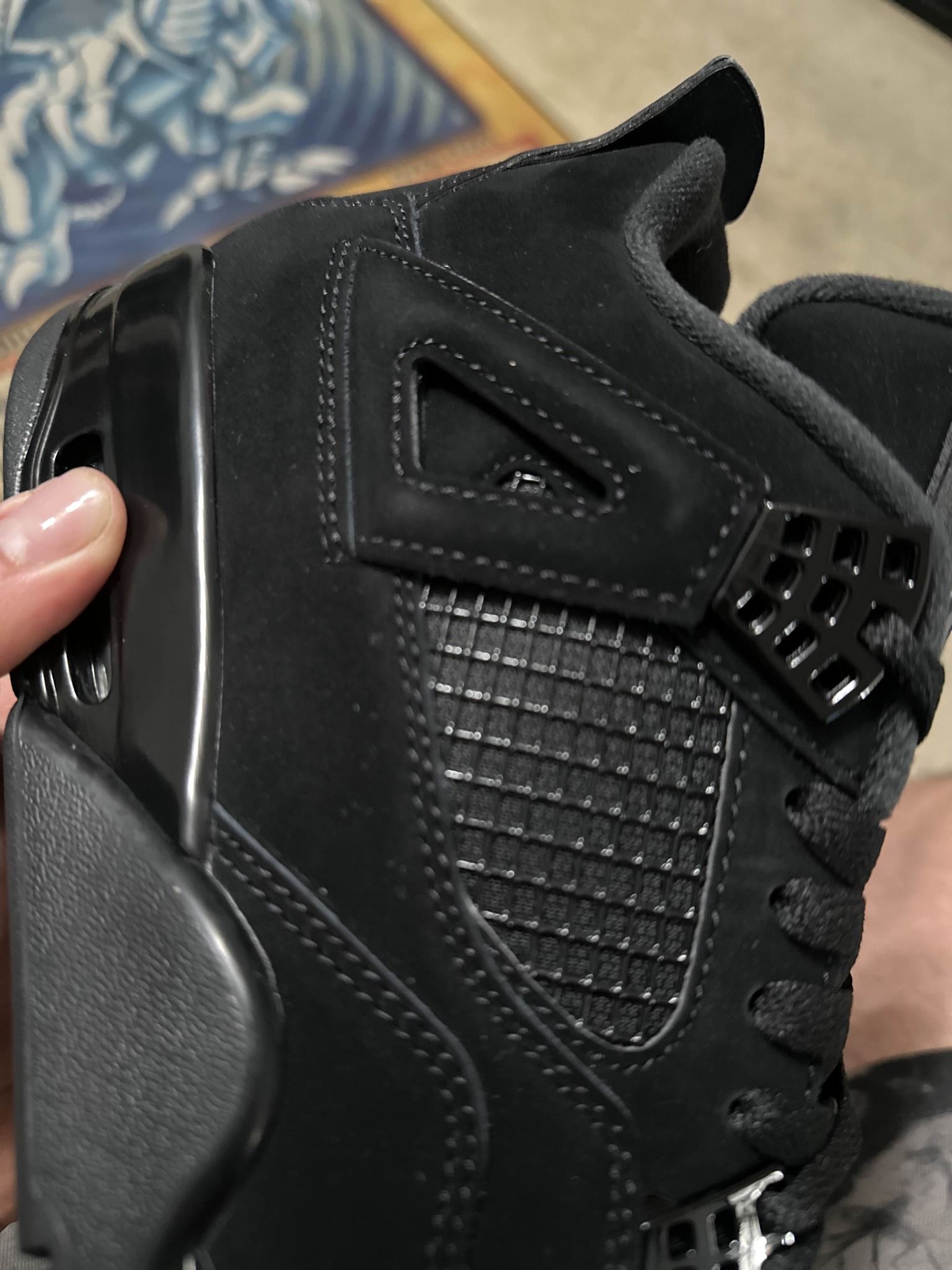 finekick came thru again💯🔥and real talk you can NOT tell the difference between these and the real thing, the suede looks 100%, back tap flicks up correctly, and the netting is separating from the actual shoe, crazy people buy these for 1000$+